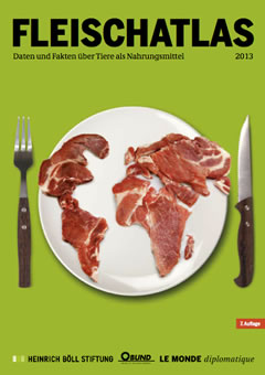 Der Fleischatlas ist eine Gemeinschaftsproduktion von Le Monde diplomatique, der Heinrich-Böll-Stiftung und dem BUND. Auf 48 Seiten rund um das Thema tierische Nahrungsmittel erklären u.a. Kathrin Birkel, Thomas Fatheuer, Susanne Gura und Manfred Kriener, warum Tiermedikamente krank machen, wie der weltweit wachsende Fleischkonsum das globale Klima belastet, den Regenwald zerstört und durch seinen viel zu hohen Wasserverbrauch eine lebenswichtige Ressource bedroht.