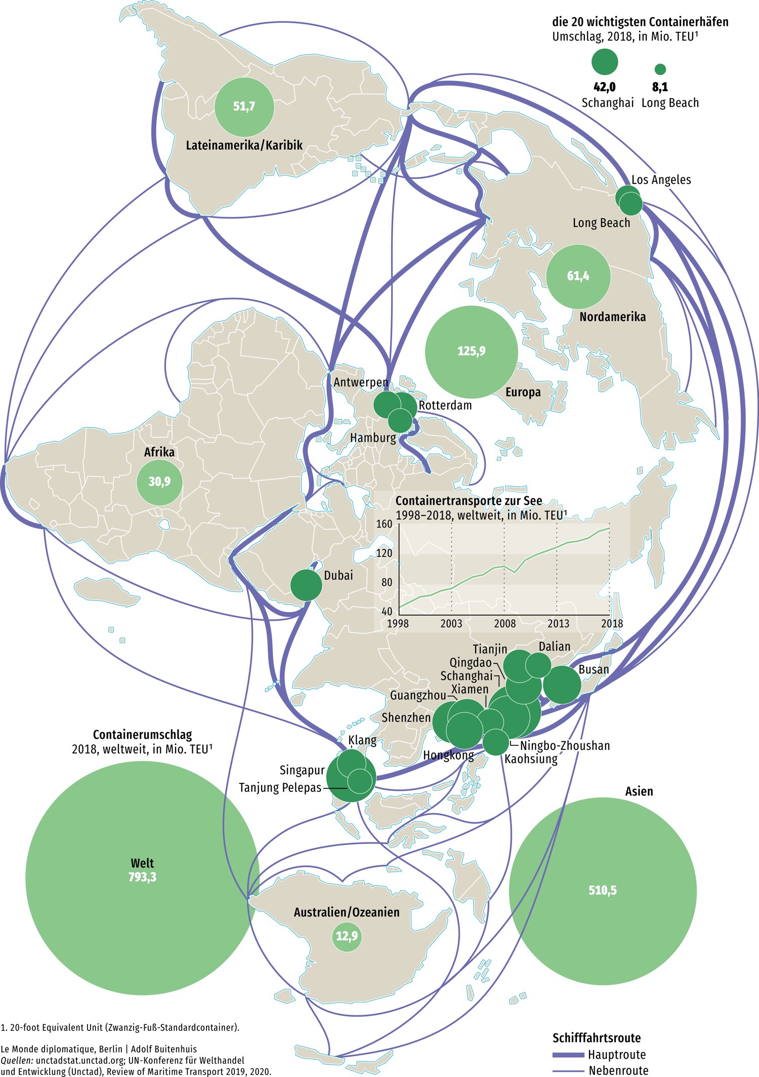 Karten und Infografiken machen regionale Konflikte, geopolitische Interessenlagen sowie wirtschaftliche und soziale Verhältnisse erst anschaulich. In unserem Kartenarchiv sind alle Karten aus LMd, aus den verschiedenen Ausgaben des Atlas der Globalisierung und den Themenheften der Edition LMd zu finden. Erfunden hat diese unverwechselbare „engagierte Kartographie” der ehemalige UN-Kartograf und langjährige Mitarbeiter der Pariser LMd-Redaktion Philippe Rekacewicz.