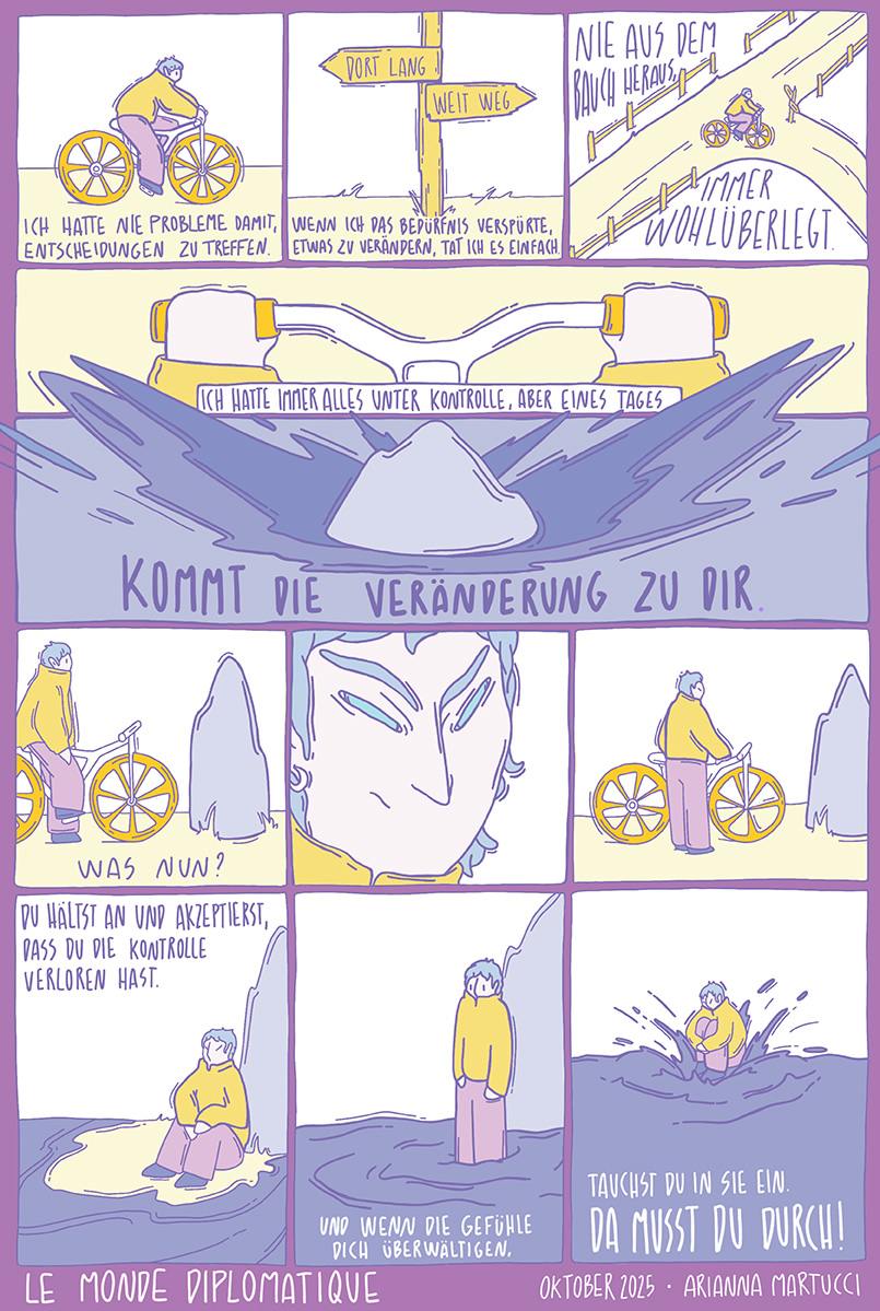 Arianna Martuccis Comic für LMd entstand in einem Jahr voller Veränderungen, in dem sie lernen musste, Dinge loszulassen und aufzuhören, alles kontrollieren zu wollen. Jede Emotion zu durchleben, ohne sich selbst zu verurteilen, war die größte Herausforderung.